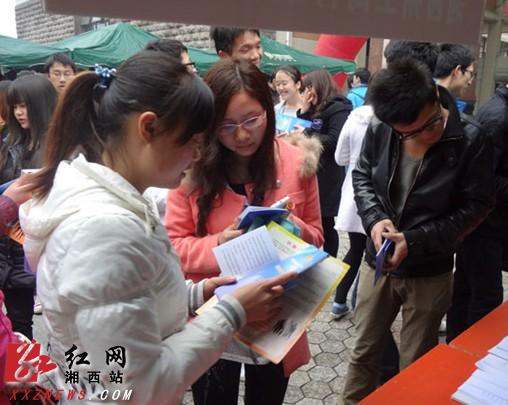 学生们积极翻阅有关就业创业宣传资料 (李杰 摄)