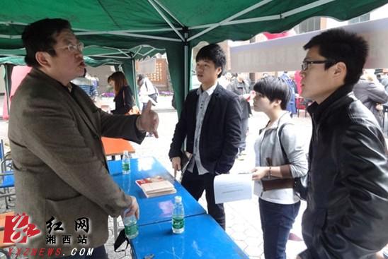 工作人员正在为大学生介绍创业扶持政策方面内容 (李杰 摄)
